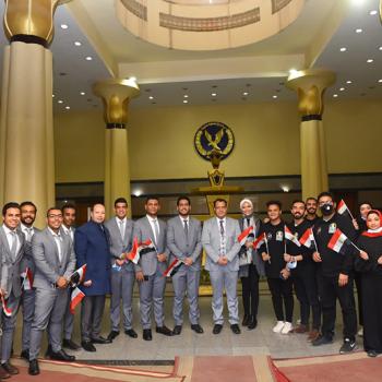 طلاب جامعة أسيوط تشارك قادة وضباط وجنود الشرطة احتفالهم بعيدهم السبعين حاملين لهم الورد والأعلام