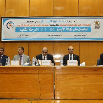 جامعة أسيوط تحتفل بتدشين أعمال المرحلة الثانية لمشروع تطوير الجهاز الإداري بالجامعة للحصول علي شهادة الأيزو 9001 : 2015 وتكرّم الكليات المتميزة في جائزة مصر للتميز الحكومي في دورتها الثانية