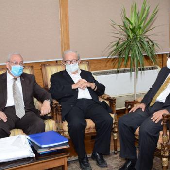 رئيس جامعة أسيوط يستقبل نظيره الأسبق لجامعة عين شمس خلال زيارته للمشاركة فى لجنة اختيار عميداً جديداً لكلية التجارة