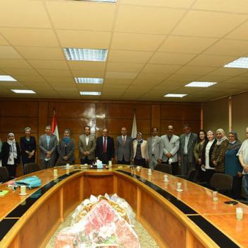 رئيس جامعة أسيوط يستقبل وفد من وحدة إدارة مشروعات تطوير التعليم العالي لمتابعة أعمال مركز القياس والتقويم بالجامعة خلال ترأسه لاجتماع مجلس إدارة المركز