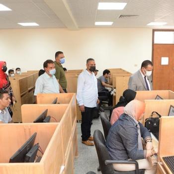 نائب رئيس جامعة أسيوط يتفقد إختبارات القدرات الالكترونية للطلاب المتقدمين للالتحاق بالجامعات الأهلية