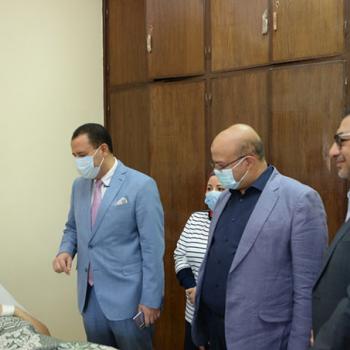 نائب رئيس جامعة أسيوط فى زيارة لإحدى طالبات الجامعة عقب إجرائها عملية جراحية للتبرع بجزء من كبدها لإنقاذ والدها بمستشفى الراجحى الجامعى