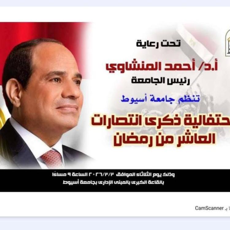 جامعة أسيوط تحتفل اليوم بذكرى انتصارات العاشر من رمضان بحضور محافظ أسيوط