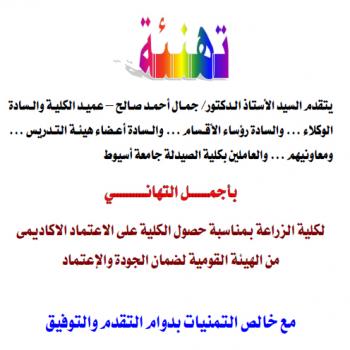 يتقدم مركز شبكة المعلومات جامعة اسيوط بخالص التهنئة لكلية الزراعة