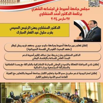 مجلس جامعة أسيوط يعقد اجتماعه الدوري برئاسة الدكتور المنشاوي مارس 2024