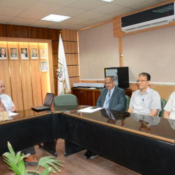 فى إطار برنامج التبادل الطلابي .. رئيس جامعة أسيوط يلتقي وفدا من طلبة كلية الصيدلة بالهند وكندا والجمعية العلمية بكلية صيدلة