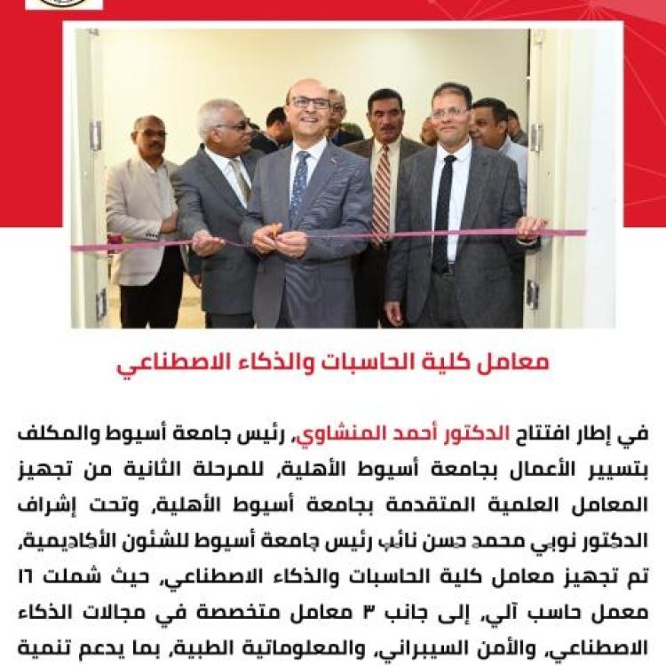 تحت رعاية الدكتور المنشاوي .. افتتاح 19 معملًا بكلية الحاسبات والذكاء الاصطناعي بجامعة أسيوط الأهلية