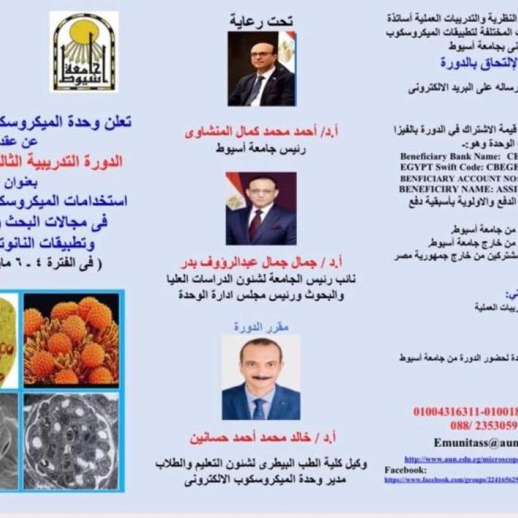 جامعة أسيوط تعلن عن تنظيم الدورة التدريبية الثالثة والعشرين لوحدة الميكروسكوب الإلكتروني في مايو 2026