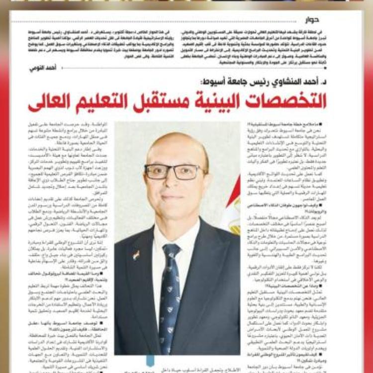 حوار مهم للدكتور أحمد المنشاوي رئيس جامعة أسيوط مع مجلة أكتوبر،