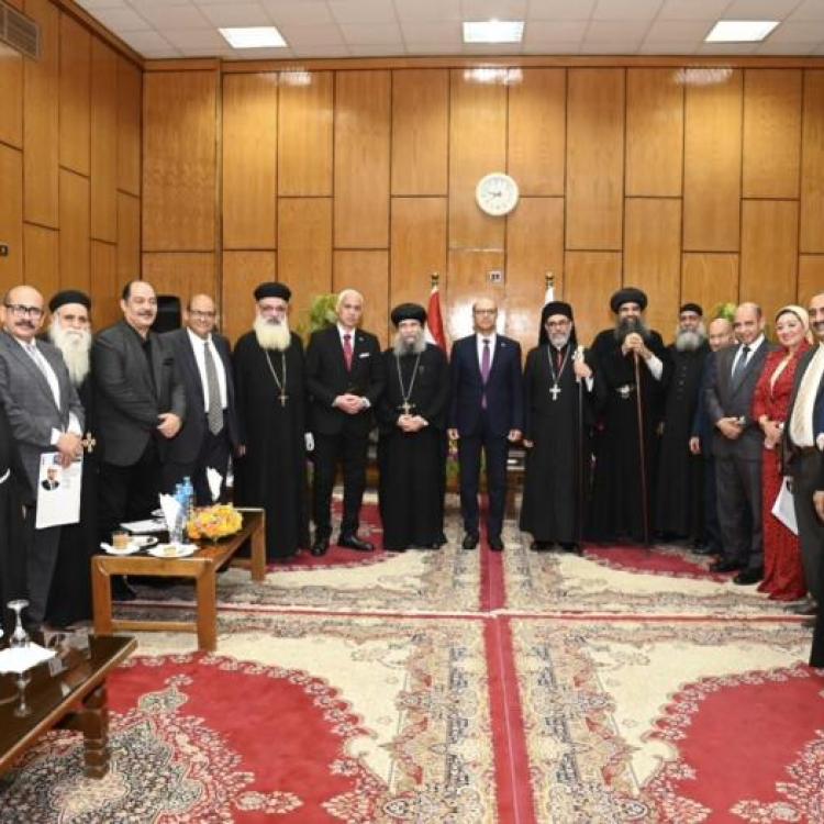 الدكتور المنشاوي رئيس جامعة أسيوط يستقبل وفدًا من قيادات الكنائس للتهنئة بعيد الفطر المبارك