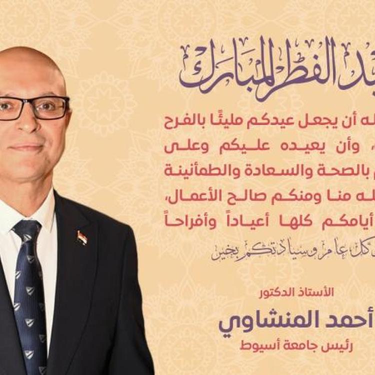رئيس جامعة أسيوط يهنئ فخامة الرئيس عبدالفتاح السيسي والشعب المصري العظيم وأسرة جامعة أسيوط بمناسبة حلول عيد الفطر المبارك