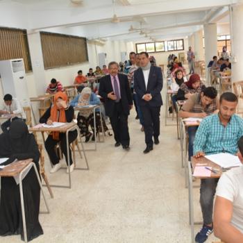 نائب رئيس جامعة أسيوط يتفقد لجان كلية التجارة
