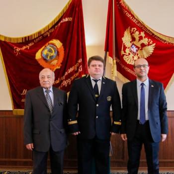 نائب رئيس جامعة اسيوط يتبادل الصور التذكارية مع رئيس جامعة موسكو للتنقيب الجيولوجى