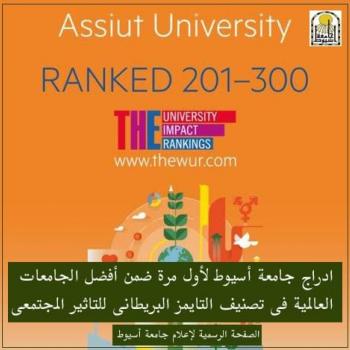 إدراج جامعة أسيوط لأول مرة ضمن أفضل الجامعات العالمية في تصنيف تايمز البريطاني للتأثير المجتمعى
