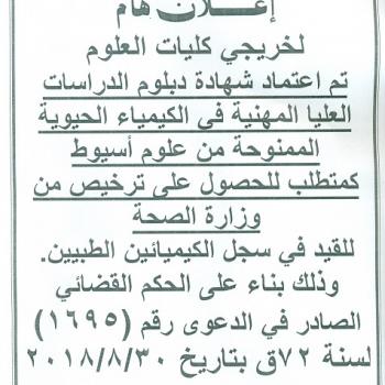 اعتماد شهادة دبلوم الدراسات العليا المهنية في الكيمياء الحيوية