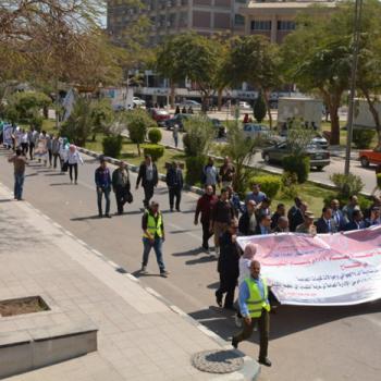 نائب رئيس جامعة أسيوط يتقدم مسيرة طلابية حاشدة احتفالاً بإعلان 2019 عاماً للتعليم