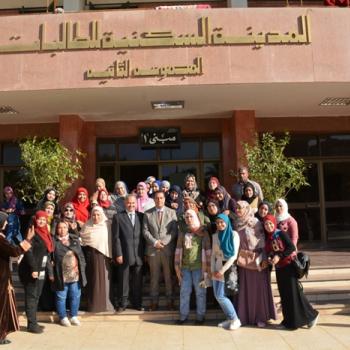 نائب رئيس جامعة أسيوط يتناول الغداء مع طالبات المدينة الجامعية