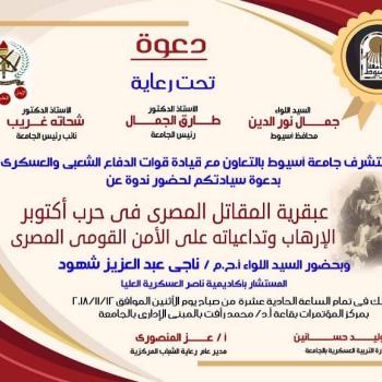 عبقرية المقاتل المصري فى حرب أكتوبر والإرهاب وتداعياته على الأمن القومى المصرى" فى ندوة غدا بجامعة أسيوط