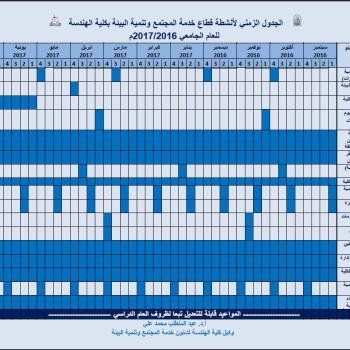 الجدول الزمن لأنشطة قطاع خدمة المجتمع وتنمية البيئة بكلية الهندسة للعام الجامعى 2016/2017