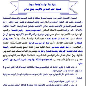 تقرير زيارة هندسة أسيوط للمعهد الفنى الصناعى للألومنيوم بنجع حمادى