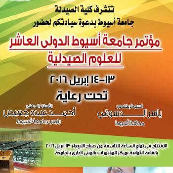 سيعقد مؤتمر جامعة أسيوط الدولي العاشر للعلوم الصيدلية في رحاب جامعة أسيوط في الفترة من 13-14 أبريل 2016م.