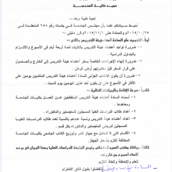 اعلان هام خاص بحضور السادة اعضاء هيئة التدريس