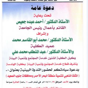 دعوة عامة لحضور الندوة البيئية بعنوان ( المثلث الذهبى لتنمية منطقة البحر الأحمر ومحافظات جنوب الصعيد)