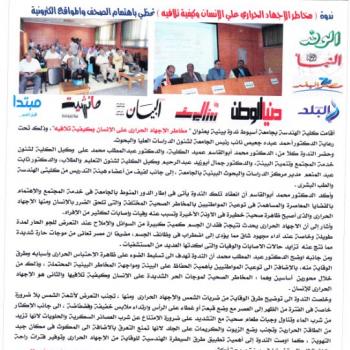 ندوة ( مخاطر الإجهاد الحرارى على الإنسان وكيفية تلافيه ) تحظى باهتمام الصحف والمواقع الإلكترونية