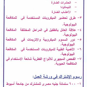 محتوي ورشة عمل بعنوان " تنوع الحيوان للفطريات التى تستخدم فى المكافحه الحيويه لآفات وأمراض النبات "