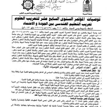 توصيات المؤتمر السنوى السابع عشر لتعريب العلوم