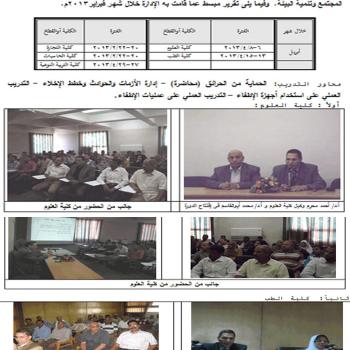 تقرير عن دورات الحماية المدنية لكليات وقطاعات الجامعة خلال شهر أبريل 2013