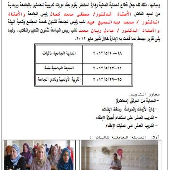 تقرير عن دورات الحماية المدنية لكليات وقطاعات الجامعة خلال شهر مايو 2013