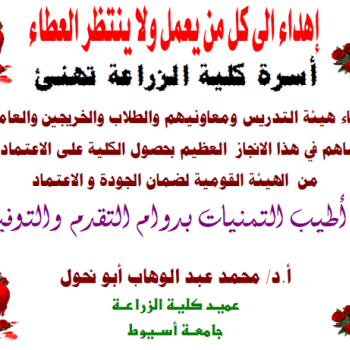 يتقدم مركز شبكة المعلومات جامعة اسيوط بخالص التهنئة لكلية الزراعة