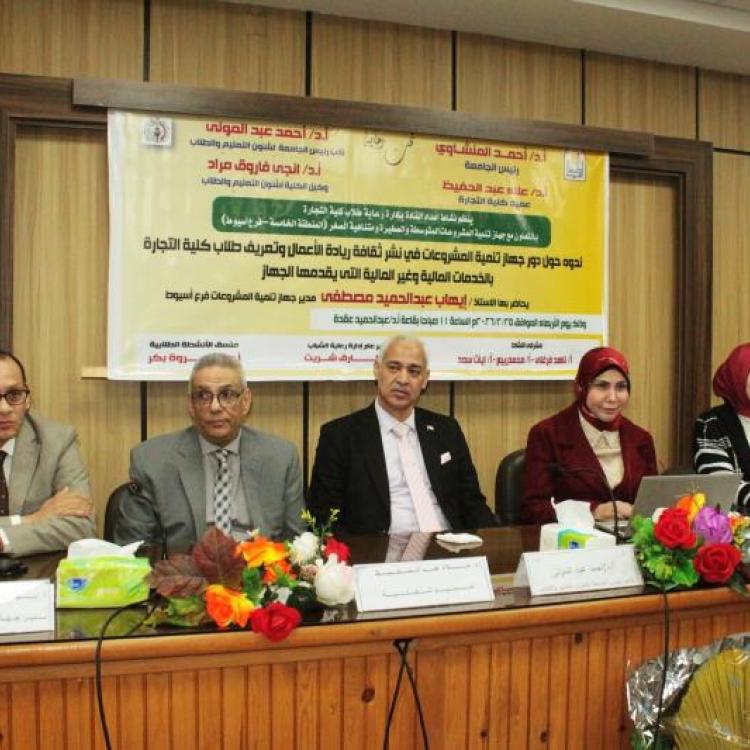 كلية التجارة بجامعة أسيوط تنظم ندوة حول دور جهاز تنمية المشروعات في نشر ثقافة ريادة الأعمال