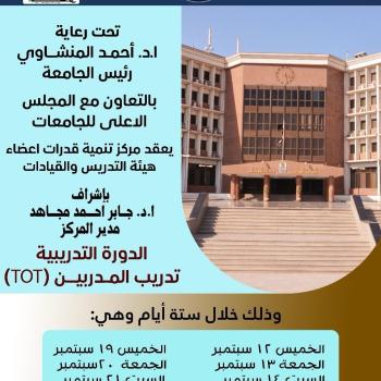…تحت رعاية الدكتور أحمد المنشاوى رئيس جامعة أسيوط؛ يعلن مركز تنمية قدرات أعضاء هيئة التدريس والقيادات بالجامعة، عن إنطلاق دورة "إعداد المدربين ToT"، والمقرر انعقادها في…