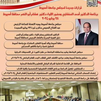 شهدت جامعة أسيوط، تحت رعاية الدكتور أحمد المنشاوي رئيس الجامعة، مساء يوم الإثنين الموافق 22 من يوليو؛ حفل…