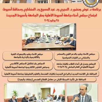 شهدت جامعة أسيوط، تحت رعاية الدكتور أحمد المنشاوي رئيس الجامعة، مساء يوم الإثنين الموافق 22 من يوليو؛ حفل…