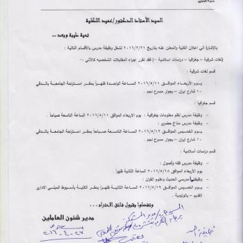 تقرر اجراء المقابلات الشخصية للسادة المتقدمين لشغل وظيفة مدرس بالأقسام الآتية: قسم اللغات الشرقية: تقرر موعد المقابلة الشخصية يوم الأربعاء 11/5/2016 الساعة الواحدة ظهرا بمقر استراحة الجامعة بالدقي 10…