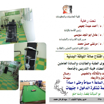 تحت رعاية السيد أ . د / أحمد عبدة جعيص رئيس الجامعة بالإنابة السيد أ . د / عادل ابو المجد سويسى عميد كلية الحاسبات والمعلومات السيد أ . د / مرغنى حسن محمد وكيل الكلية لشئون التعليم والطلاب…