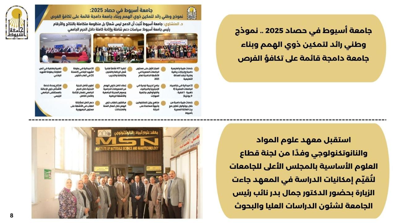 • جامعة أسيوط في حصاد 2025 .. نموذج وطني رائد لتمكين ذوي الهمم وبناء جامعة دامجة قائمة على تكافؤ الفرص.