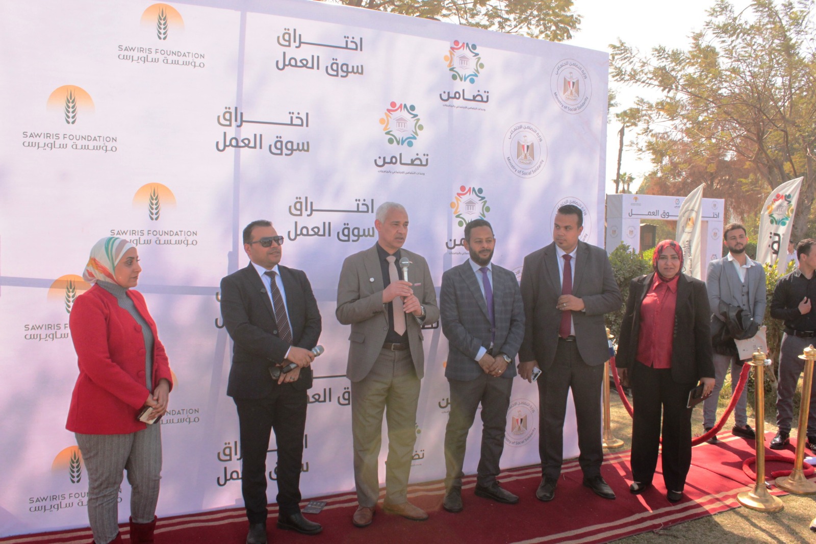 ونُفذت فعاليات البرنامج والملتقى التوظيفي تحت إشراف الدكتور أحمد عبد المولى نائب رئيس الجامعة لشئون التعليم والطلاب، والدكتور محمد العقبي مساعد وزيرة التضامن الاجتماعى لشئون الاتصال الاستراتيجي والإعلام والمشرف العام علي وحدات التضامن بالجامعات، والدكتور أسامة سعد المدير التنفيذي لمشروع وحدات التضامن الاجتماعي بالجامعات، وبالتنسيق مع الأستاذ أحمد محمود المنصوري منسق وحدة التضامن الاجتماعي بالجامعة، والأستاذ محمد سباق محروس، المسئول الإعلامي لوحدات التضامن بالجامعات.