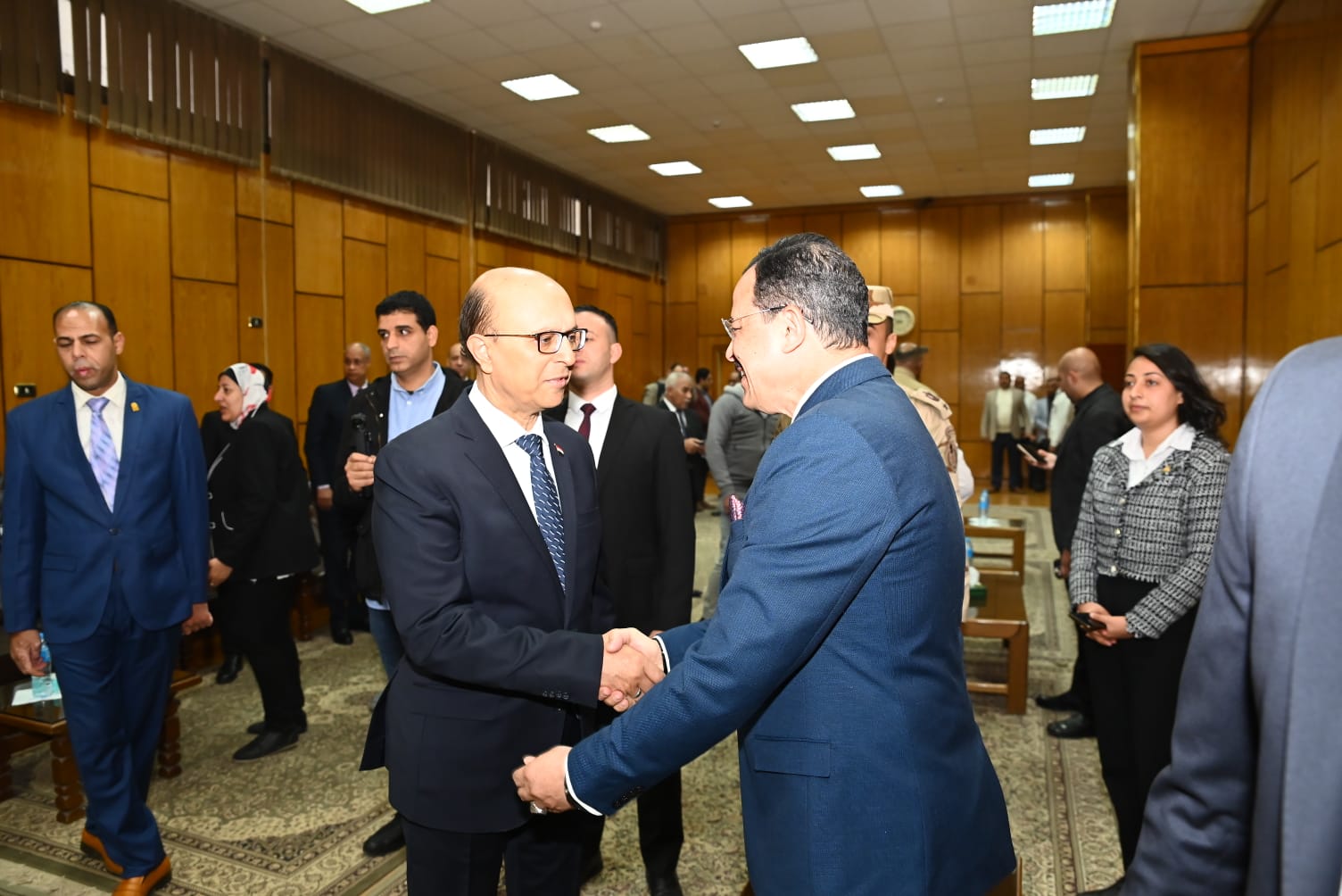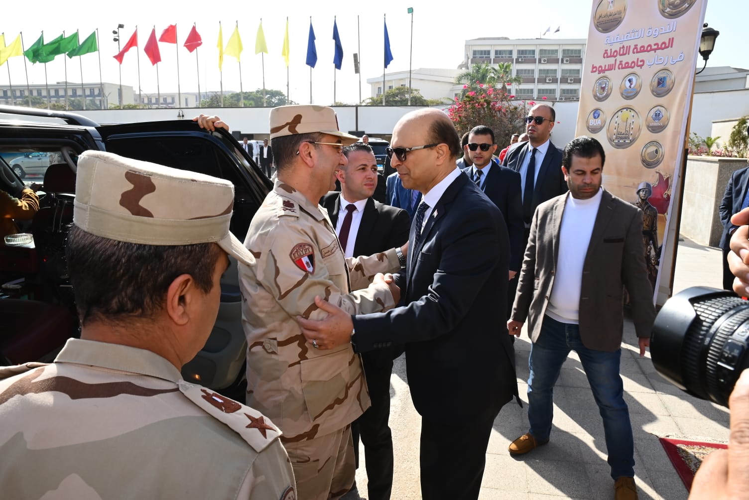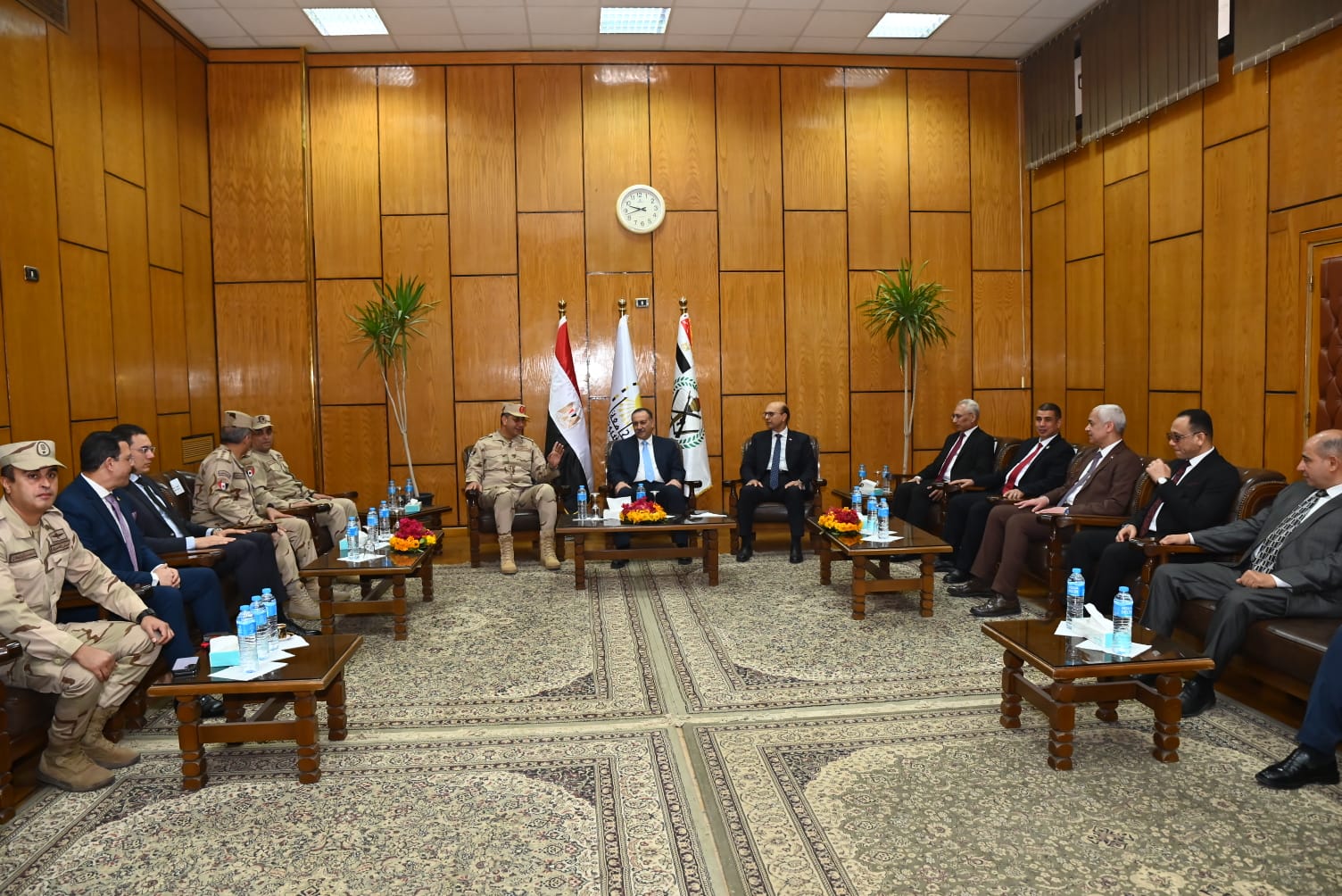 وضم اللقاء اللواء الدكتور هشام أبو النصر محافظ أسيوط، واللواء أركان حرب هشام حسني قائد قوات الدفاع الشعبي والعسكري، وهيئة قيادته، إلى جانب الدكتور عصام فرحات رئيس جامعة المنيا، والدكتور منصور كباش رئيس جامعة سفنكس، والدكتور جمال تاج رئيس جامعة أسيوط الجديدة التكنولوجية، والدكتور حسين طه نائب رئيس جامعة سوهاج لشئون التعليم والطلاب، والدكتور أحمد سعد عميد الكلية التكنولوجية المصرية الألمانية.