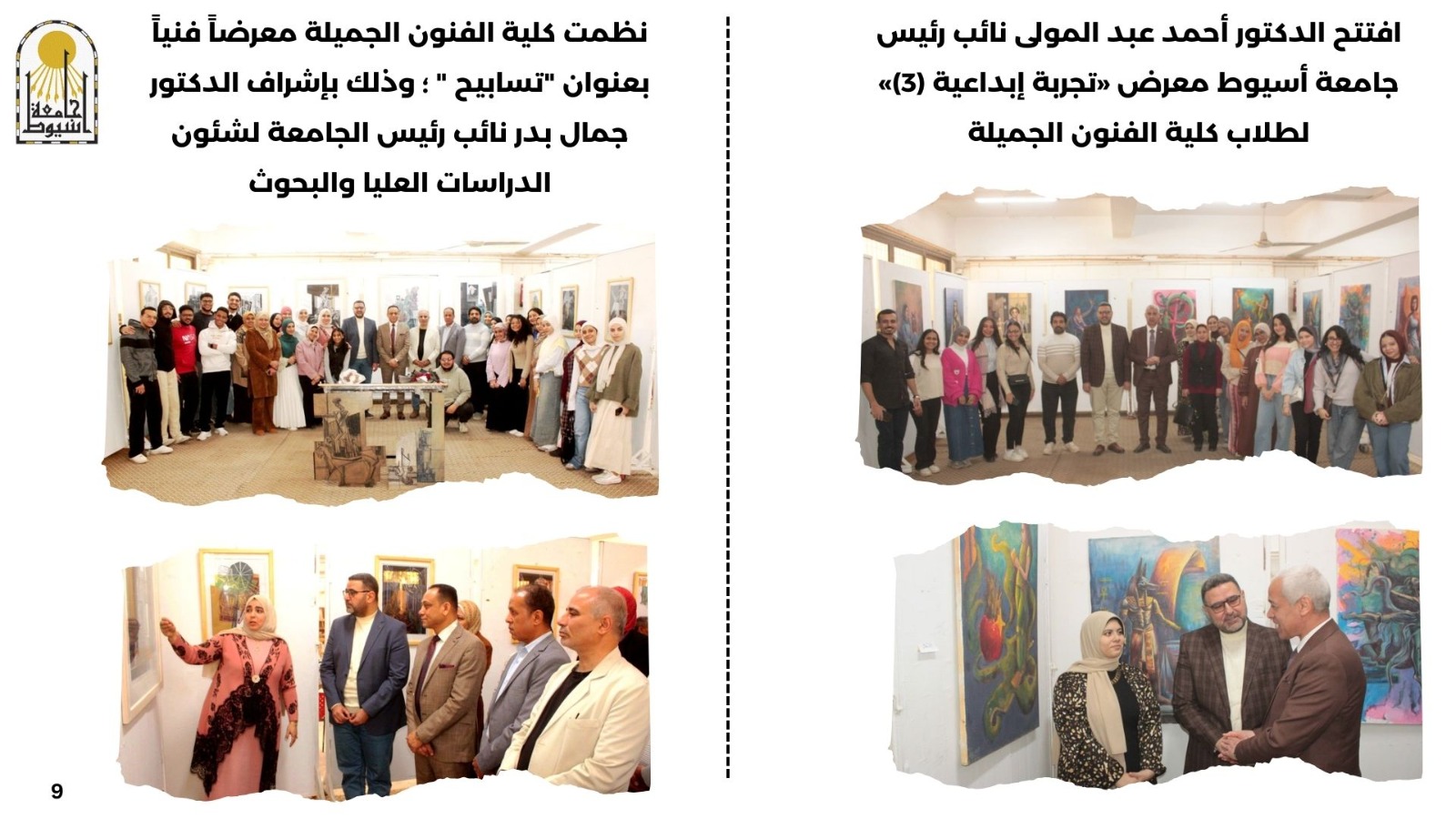• نظمت كلية الفنون الجميلة معرضاً فنياً بعنوان "تسابيح " ؛ وذلك بإشراف الدكتور جمال بدر نائب رئيس الجامعة لشئون الدراسات العليا والبحوث.