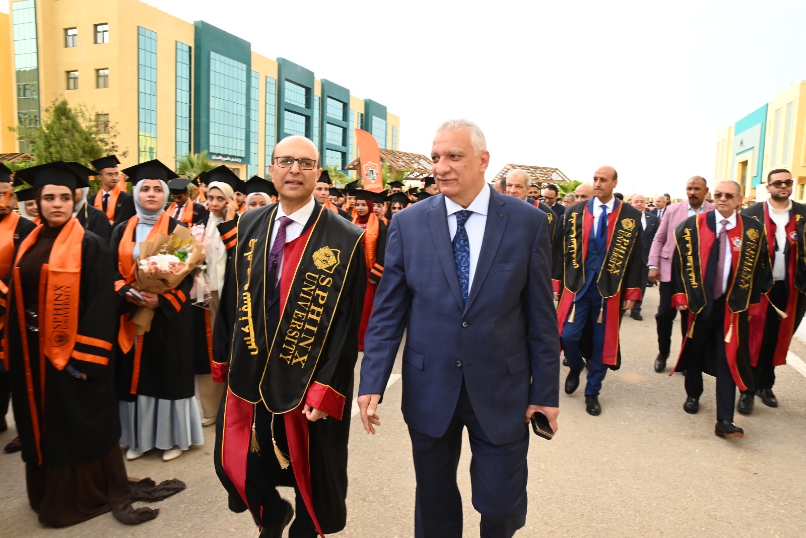 شهد الدكتور أحمد المنشاوي، رئيس جامعة أسيوط، الاحتفالية الكبرى التي نظمتها جامعة سفنكس بمقرها في أسيوط الجديدة، اليوم الأحد الموافق 29 مارس 2026، للاحتفاء بتخريج دفعة جديدة – وأولى دفعات – كليات: طب الفم والأسنان، والصيدلة، وتكنولوجيا العلوم الصحية التطبيقية، وذلك بحضور كوكبة من القيادات التنفيذية والأكاديمية، وأعضاء هيئة التدريس، وأولياء الأمور.