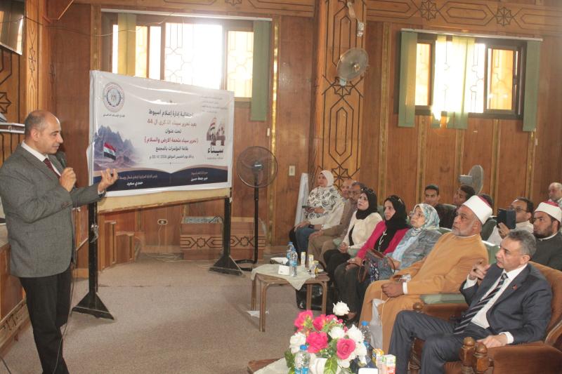 تحت رعاية الدكتور أحمد المنشاوي، رئيس جامعة أسيوط، شارك الدكتور محمد عدوي، نائب رئيس الجامعة لشؤون خدمة المجتمع وتنمية البيئة، في فعاليات الاحتفالية التي نظمها مجمع إعلام أسيوط بعنوان «تحرير سيناء.. ملحمة الأرض والسلام».