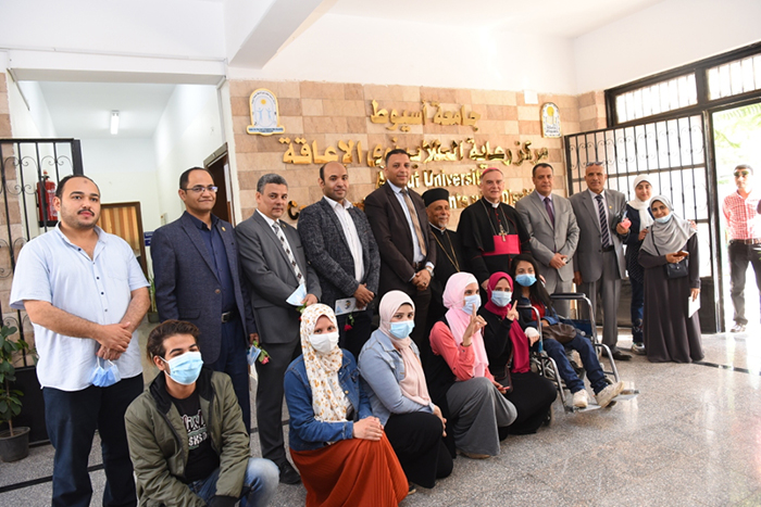 حيث بدأت الجولة بتوجه الوفد إلى مركز رعاية الطلاب ذوى الإعاقة حيث أوضح الدكتور محمد حسين موسى مدير المركز أن المركز تابع لقطاع شئون التعليم والطلاب برئاسة الدكتور شحاتة غريب نائب رئيس الجامعة ويُعد ثمرة تعاون بين الجامعة وهيئة الإيمدايست بمصر ومؤسسة حلم للتعليم والتدريب والاستشارات والذي يهدف إلى تيسير كافة الخدمات التعليمية والثقافية والإجتماعية المقدمة للطلاب من ذوى الإعاقة والذي ينفرد على مستوى الجامعات المصرية باحتوائه على نادي ترفيهي مخصص للطلاب ذوى الإعاقة وكذلك معمل مخصص لاختيارات الطلاب المكفوفين والمجهز بكبائن امتحانات تمكن الطلاب المكفوفين من أداء إمتحاناتهم على نحو مستقل ويسير.