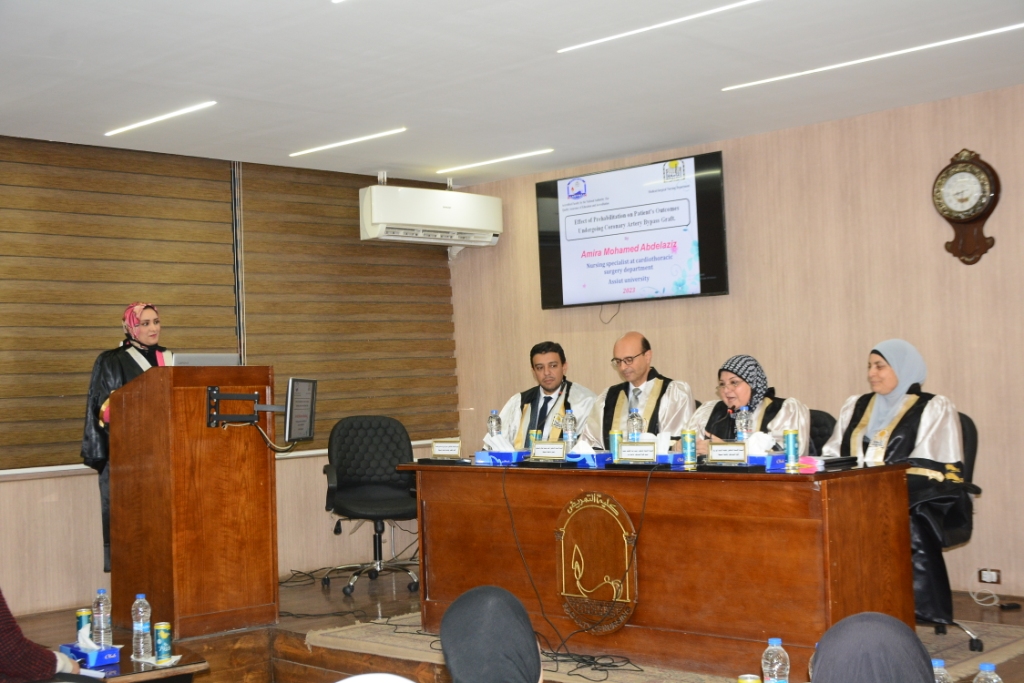 جاء ذلك في أعقاب مشاركة سيادته فى وقائع مناقشة رسالة ماجستير حول تأثير إعادة التأهيل على نتائج المرضى الذين يخضعون لجراحة الشرايين التاجية ، والمقدمة من الباحثة أميرة محمد عبد العزيز ,وقد تكونت لجنة الحكم والمناقشة من الدكتور أحمد المنشاوى رئيس جامعة اسيوط والدكتورة زينب عبد اللطيف عميد كلية التمريض بجامعة بدر والدكتورة شلبية السيد أبوزيد كلية التمريض جامعة أسيوط والدكتور حسين خيرى عبد العزيز الخياط بكلية الطب جامعة أسيوط ، وبحضور الدكتورة سماح عبد الله عميدة كلية التمريض بجامعة أسيوط والسادة الوكلاء وأعضاء هيئة التدريس بالكلية .