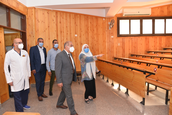 كما كشف رئيس الجامعة عن تفقده لعدد من القاعات الدراسية وذلك للإطمئنان على تطبيق الإجراءات الاحترازية لوقاية الأفراد من إنتشار عدوى فيروس كورونا المستجد والتى تتضمن الحفاظ على مسافات متباعدة بين الطلاب وتقسيم الفرق الدراسية إلى مجموعات ، موجهاً بتوفير مواد مطهرة للأيدى أمام كافة المعامل والقاعات الدراسية لإستخدام الطلاب وأفراد الكلية ، مشدداً كذلك على ضرورة إرتداء الطلاب للكمامات داخل القاعات الدراسية والمعامل ، والحفاظ على إجراء عمليات التعقيم للأماكن والأدوات بصفة دورية.