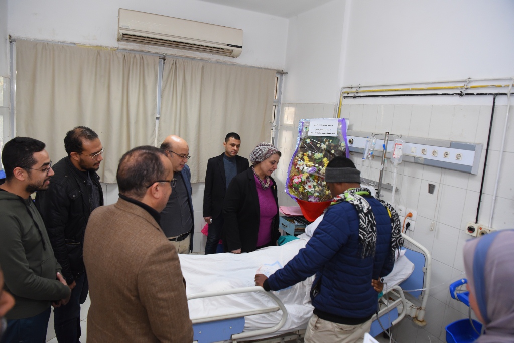 ومن جانبه أشار الدكتور علاء عطيه أن زيارة رئيس جامعة أسيوط بدأت بالعناية المركزة بوحدة الإصابات لزيارة السيدة زمزم من محافظة أسوان والتى تبلغ من العمر 59 عاماً حيث أوضح أن المصابة حالتها الصحية مستقرة ويتم متابعة وضعها الصحى على مدار 24 ساعة و التي تعرضت لبتر تحت ركبة الساق اليسرى وبتر فى الذراع اليمنى أثر الحادث.