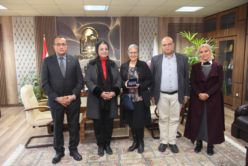 كما أكدت الدكتورة مها غانم خلال اللقاء على استراتيجية الجامعة الهادفة إلى توطيد أواصر التعاون والعمل المشترك وتكوين شراكات دولية مع كبرى الجامعات والمؤسسات العلمية والطبية المتقدمة فى مختلف المجالات فى إطار حرصها على الانفتاح العالمى وإثراء الحركة العلمية والبحثية داخل كلياتها.